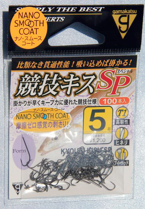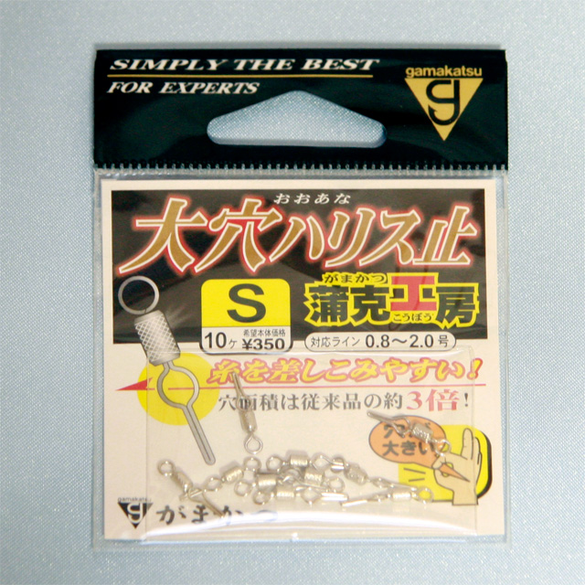 いろいろなメーカーから様々な製品や大きさの物が売られており、僕自身もいろいろな物を買い求めて使ってきましたが、数年前にがまかつの「蒲克工房 大穴ハリス止」を使ってからは、糸の通しやすさが格段によく、しっかりと糸も止まってくれるため、ずっと愛用している逸品です。しかも小物類は最近外国製が多い中、やっぱりがまかつですね、こんな小物一つにもMADE IN JAPANにこだわっています。
